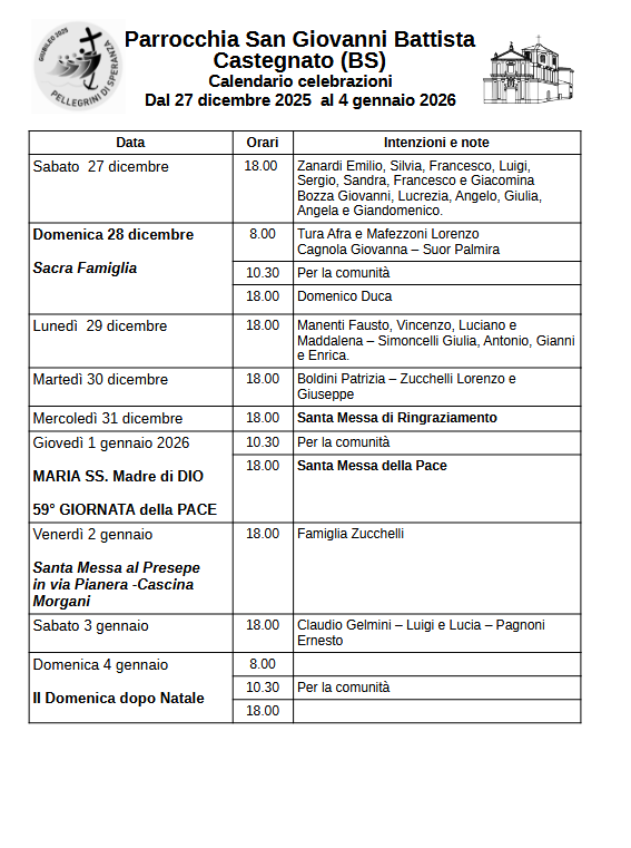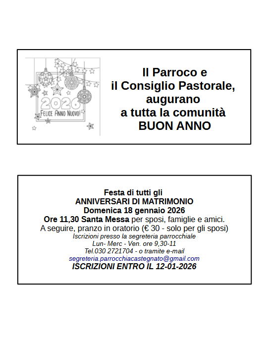 ANNUNCI DAL 27 DICEMBRE AL 4 GENNAIO 2026